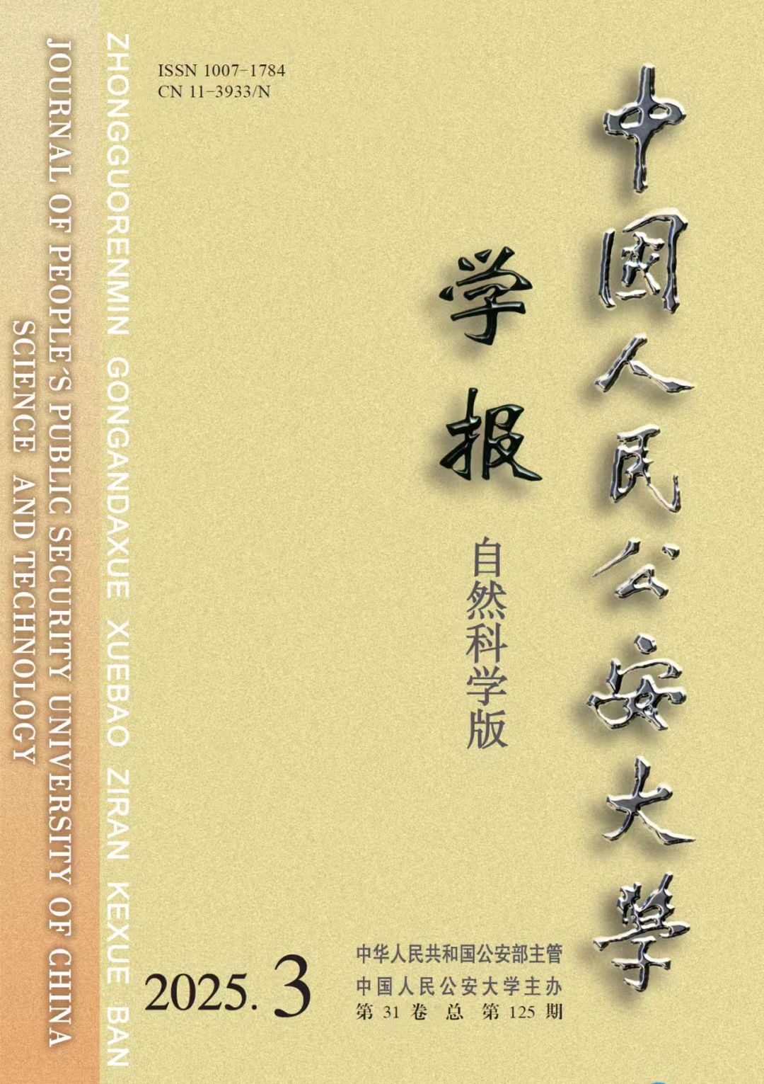 Journal of People’s Public Security University of China (Natural Sciences Edition) (quarterly), first published in 1995, is the sole academic journal in China's public security system dedicated to police science and technology. It focuses on theoretical research in police technology and practical scientific applications, serving as an important bellwether in specialized fields such as forensic science and smart policing. In 2016, it was honored with the “Outstanding Scientific Journal of Chinese Universities” award.